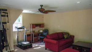 Here are some completed photos of an existing attic space in Henrico Co. that we converted to living space. The existing attic space was strictly a utility space and storage area. We relocated and the HVAC return, framed in knee walls, a new window and partition walls. Looking back toward stairwell, utility and knee wall…